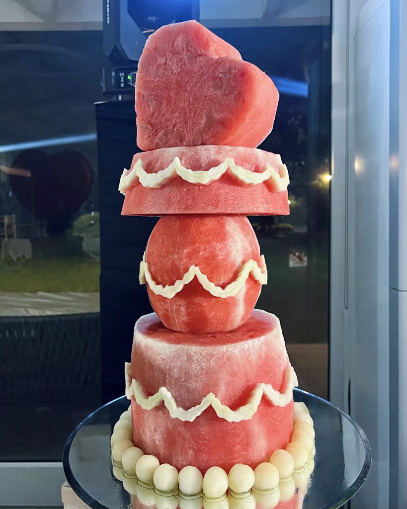 La mia esperienza nel settore mi ha permesso di acquisire una profonda conoscenza delle materie prime, delle tecniche di lavorazione e delle innumerevoli possibilità che la frutta offre. Con il tempo, questa esperienza mi ha condotto a diventare un Fruit Designer professionista, specializzandomi nella creazione di scenografie fruttate per eventi esclusivi.