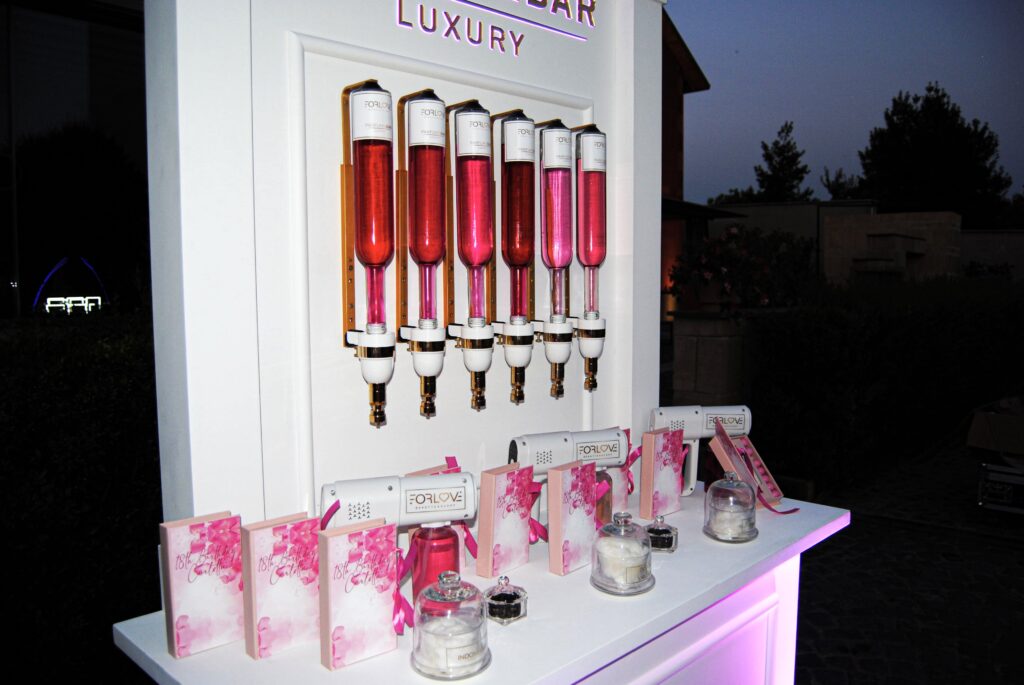 Siamo un azienda di cosmetici , da poco abbiamo inserito un nuovo progetto: il parfume bar . Il parfume bar è un’esperienza sensoriale unica che trasforma il tuo evento in un viaggio olfattivo indimenticabile. I tuoi ospiti avranno l’opportunità di creare la propria fragranza personalizzata, scegliendo tra una selezione di essenze pregiate. Guidati da esperti del profumo, potranno esplorare il mondo delle fragranze e portare a casa un ricordo esclusivo e su misura. Perfetto per matrimoni, eventi aziendali o feste private , il Parfume bar aggiunge un tocco di eleganza e creatività, rendendo ogni occasione davvero speciale.