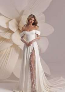 audacia. Gli abiti da sposa sono caratterizzati da design innovativi, con orli ridotti al minimo e scolli profondi che catturano l’attenzione.